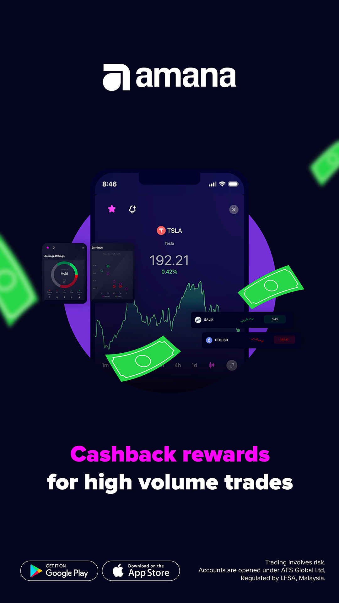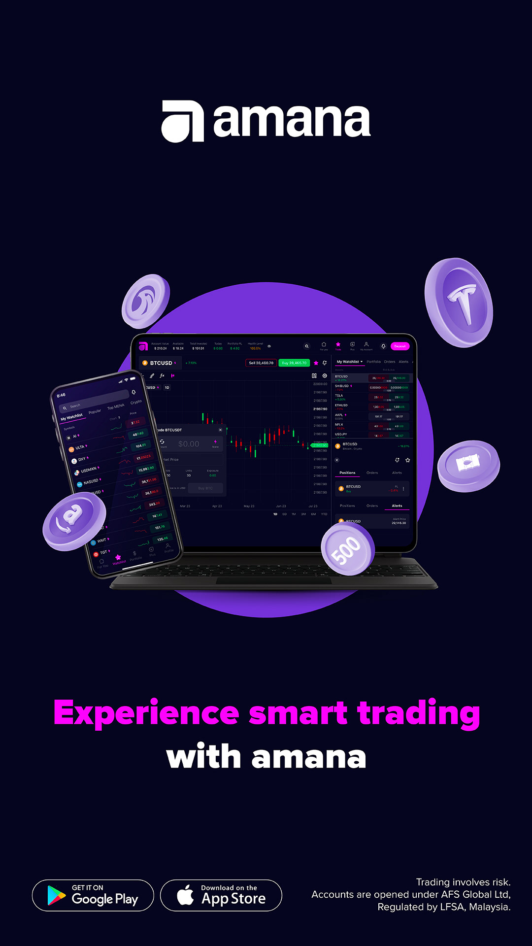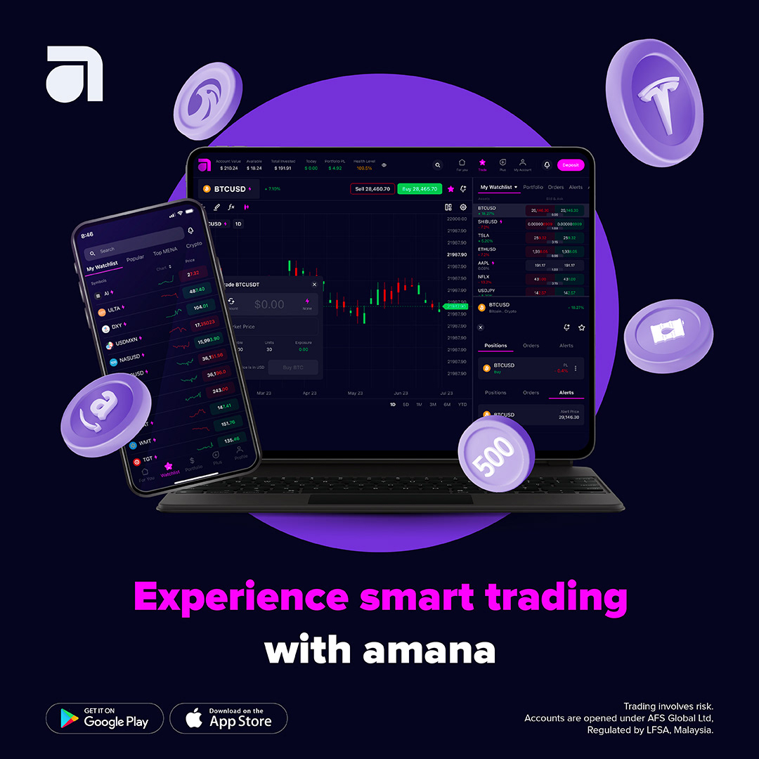 A collection of social media and static posts that were circulated across online platforms to promote amana's app crypto trade services, a leading trading technology form that operates in the MENA region.